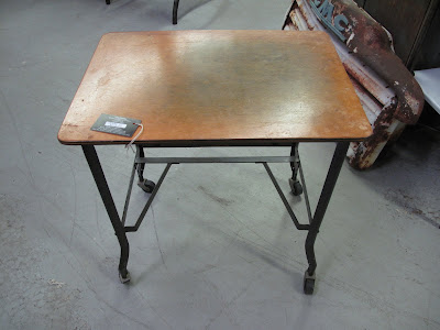 Coming back to my Urban Remains visit, I saw a small table on casters that I thought could make a good end table, but when they brought it down from the shelf to the floor, I found a huge stain on it.
